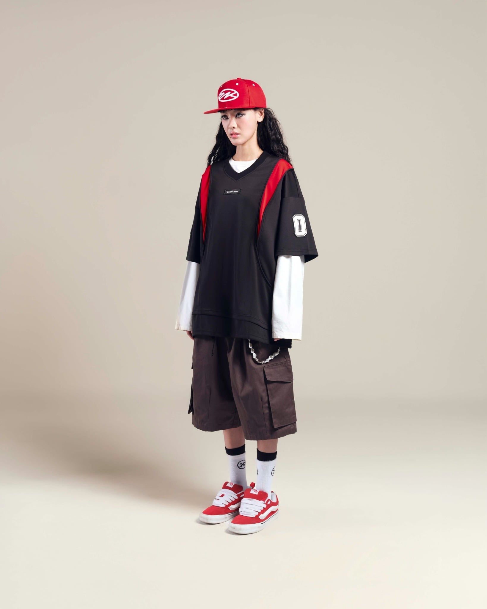 - Phối màu tương phản giữa tone đen chủ đạo và các đường line đỏ nổi bật (Red Line Jersey)