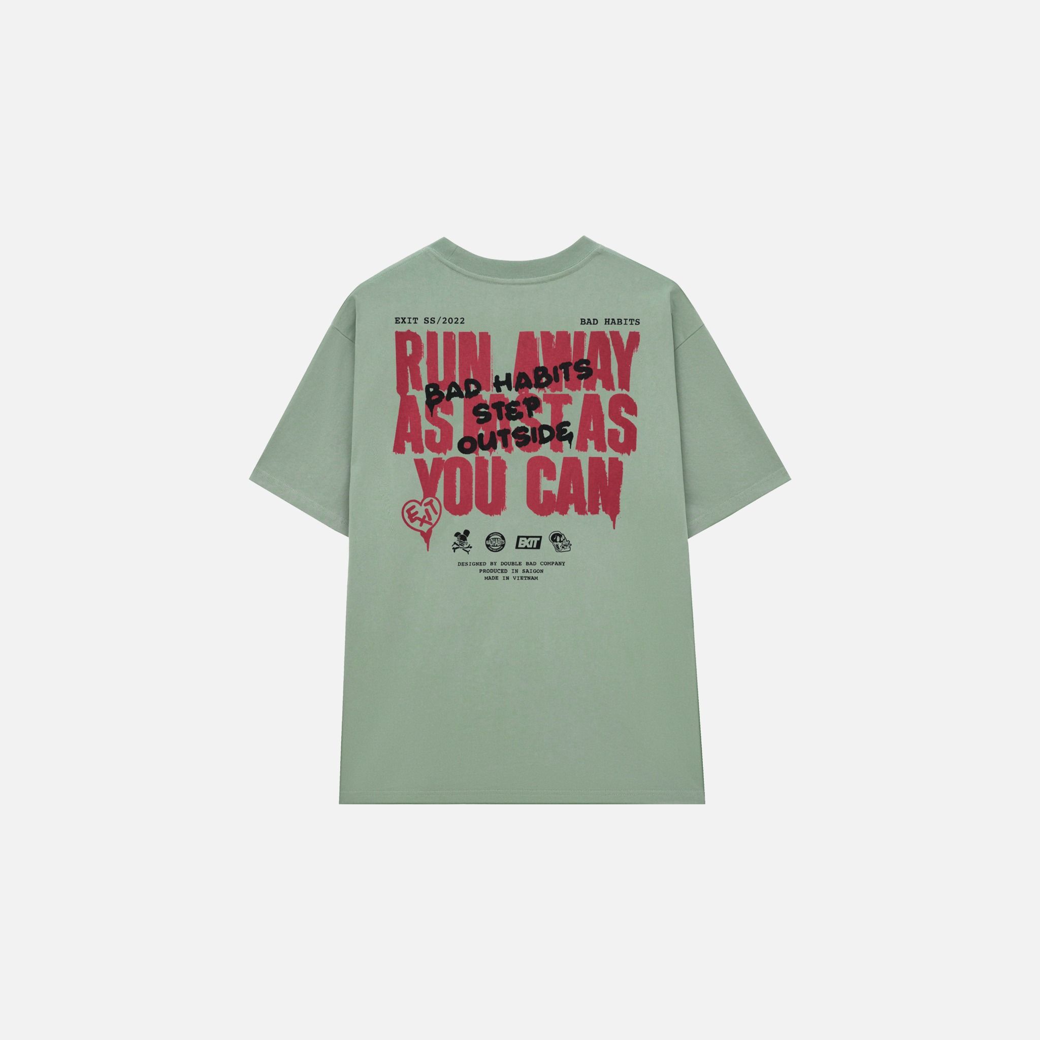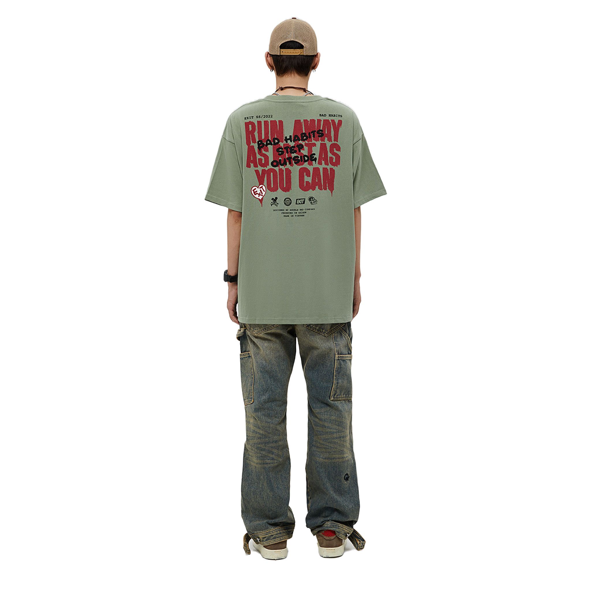 • Graphic “Run Away” được in Discharge ở mặt sau áo